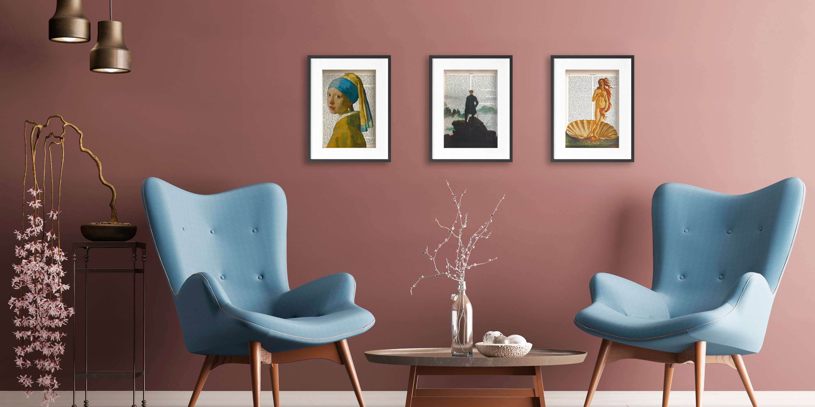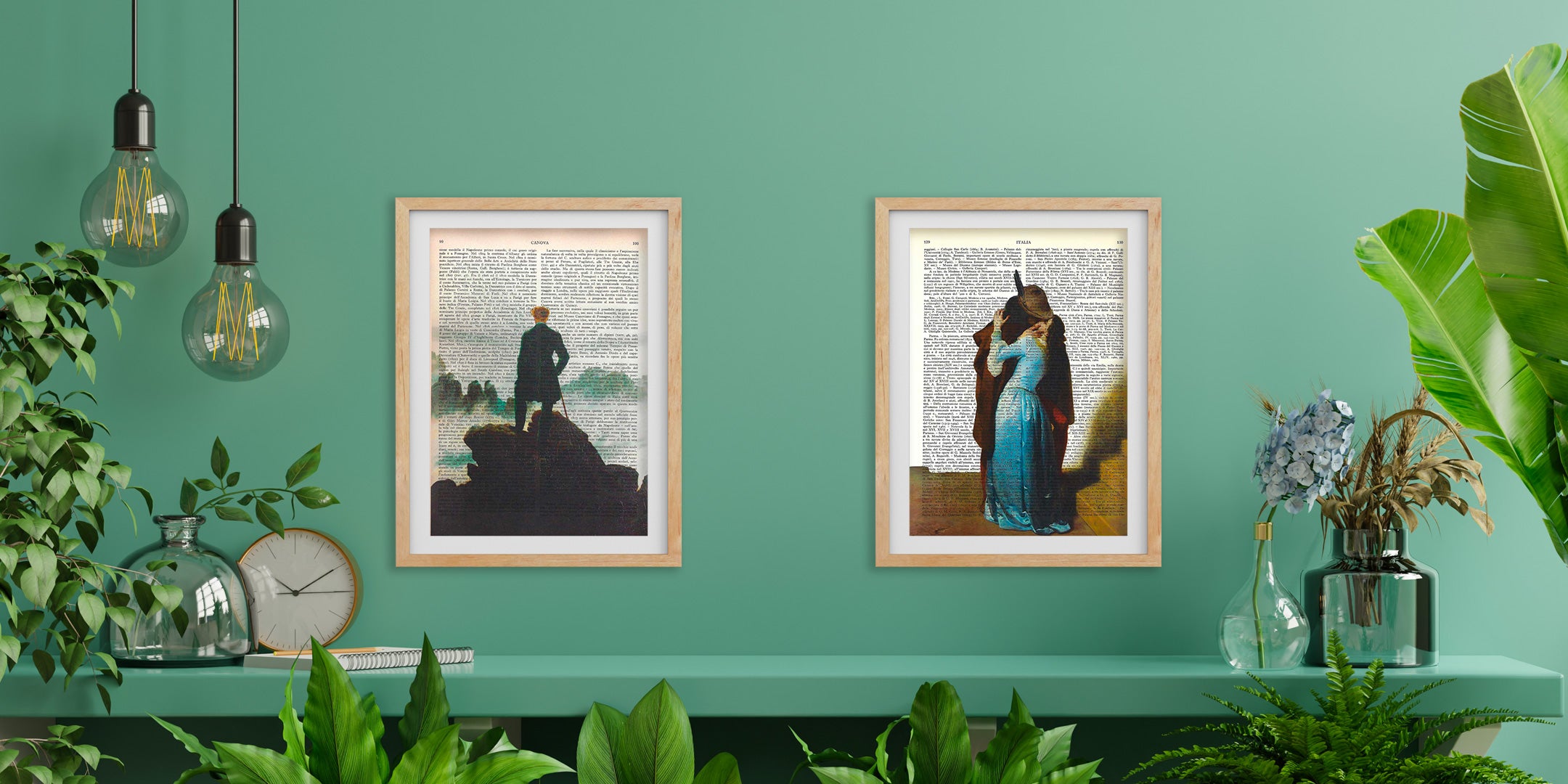 Opere d’arte selezionate per la loro bellezza, stampate su pagine di libri che hanno una storia.