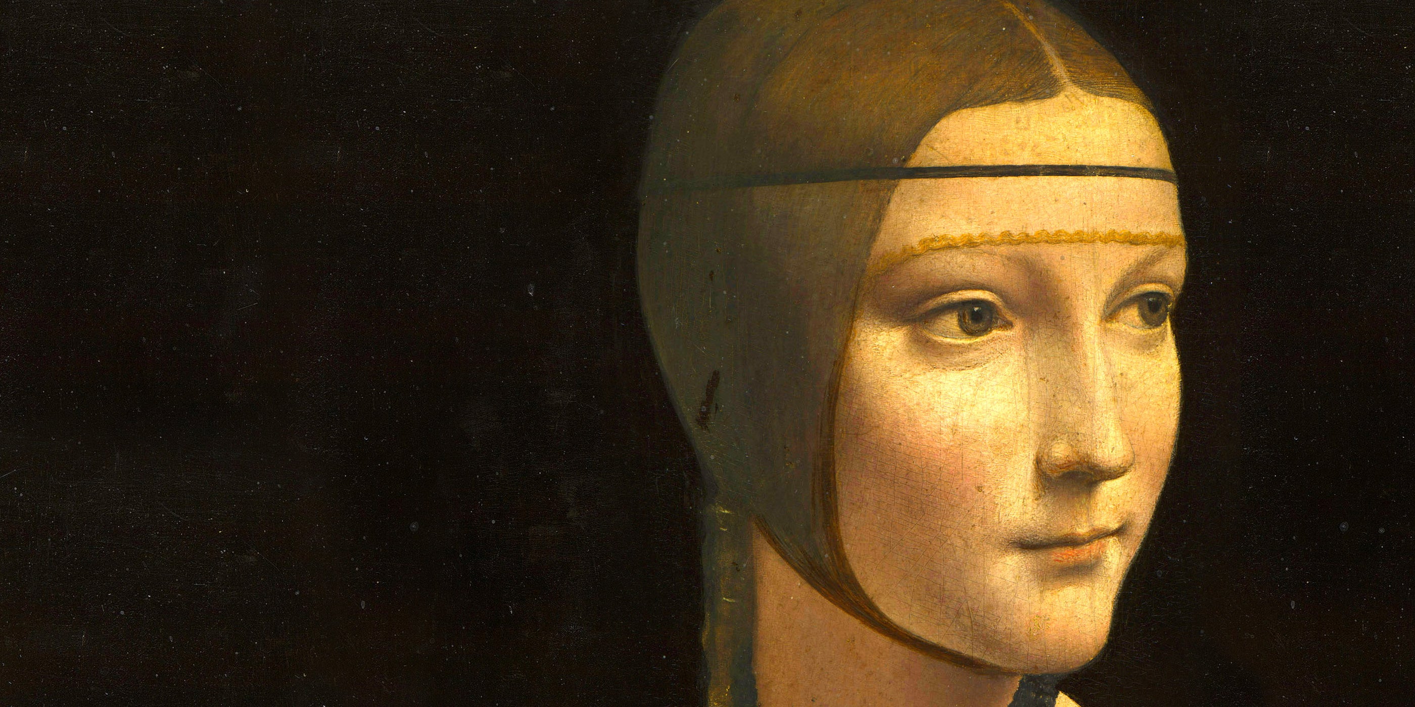 "Lady with an Ermine" by the Italian painter Leonardo da Vinci is one of the most beautiful works of art of all time. It is the portrait of Cecilia, the refined and beautiful lover of Ludovico il Moro, shown here with all her grace and air veiled in mystery.