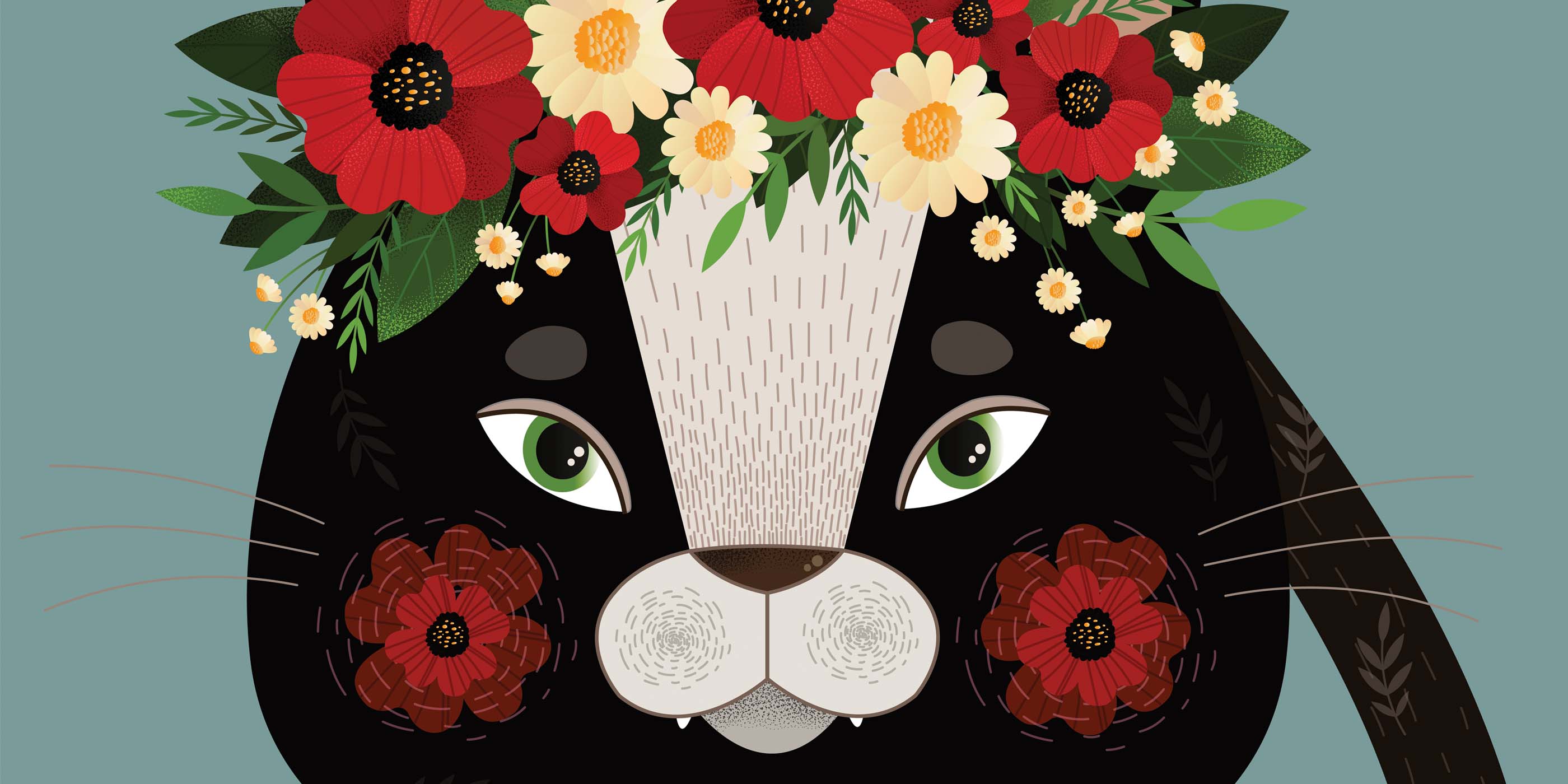 A cat with flowers, to bring happiness to any room of a boy or girl, and make them happy!