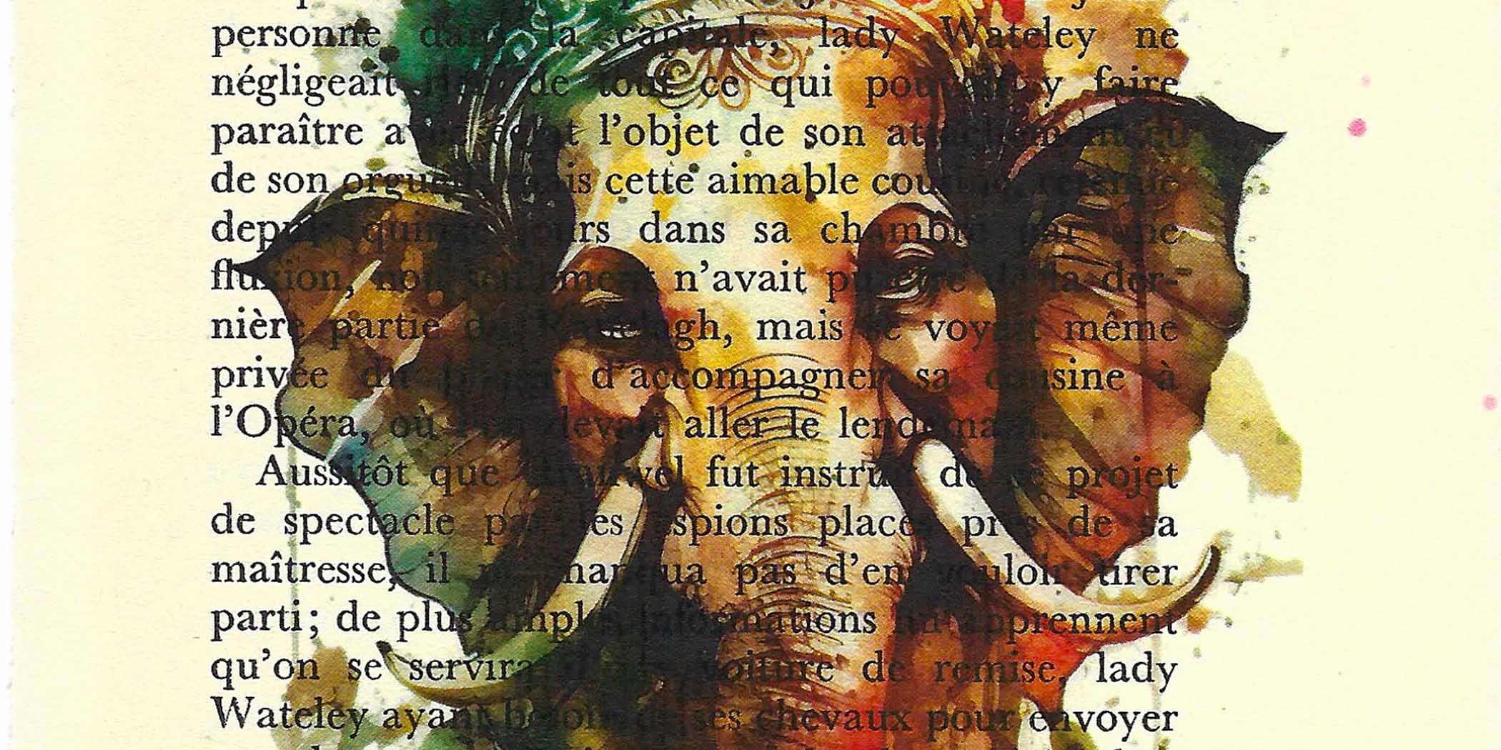 Un acquarello delicato stampato su un foglio di un libro francese del 1960 dalla carta molto particolare.
