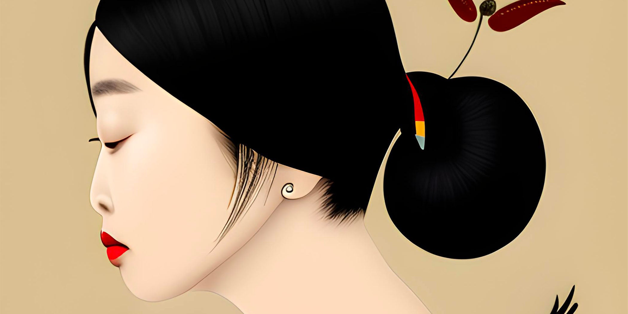 Una ragazza orientale misteriosa e affascinante, simbolo di pace e riflessione.