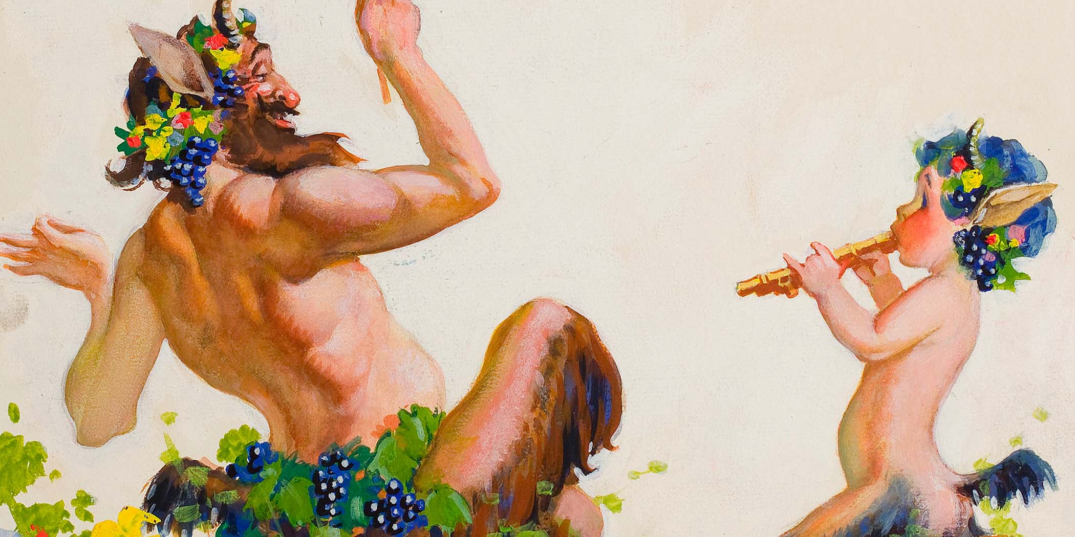 Questa immagine del Dio Pan e di un piccolo satiro è stata realizzata da B. Cory Kilvert per la copertina della rivista Life nel 1923.