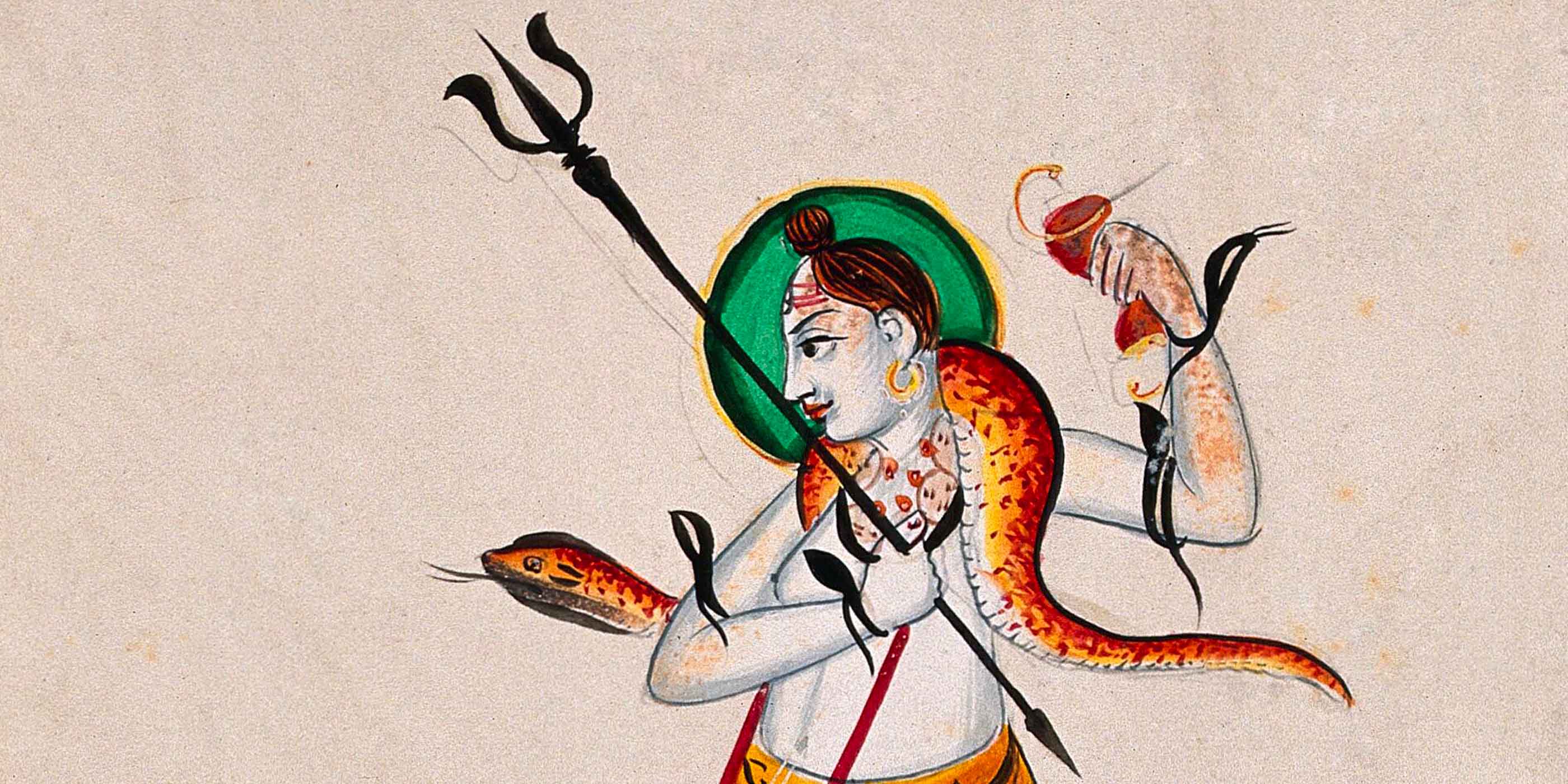 Antico dipinto del Dio Shiva con i suoi simboli mentre cavalca Nandi conservato presso la Wellcome Collection a Londra.